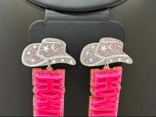 Glitter HOWDY Cowgirl Earrings – Pink & Silver Statement Pair