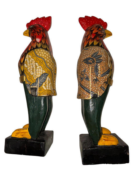Hand-Carved Rooster Couple – Folk Art Figurines
