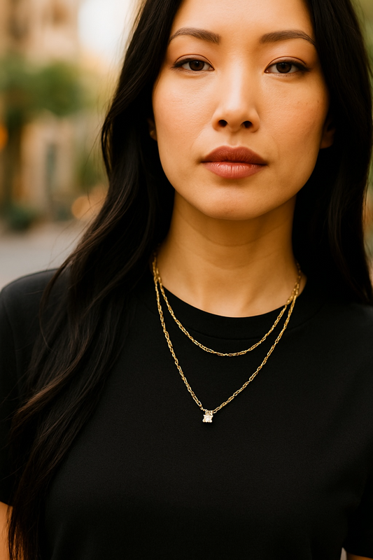 Dainty 14k Gold Plated Layered Necklace with Solitaire Pendant – Adjustable Double Chain Jewelry Gift
