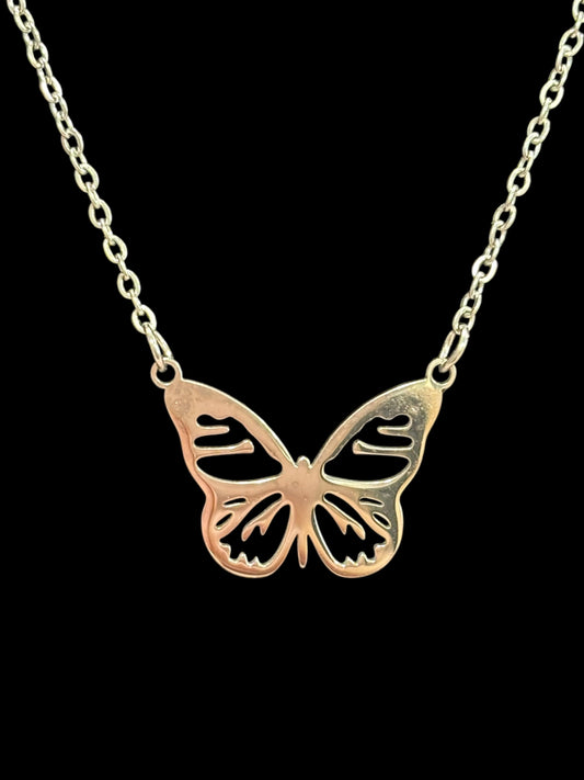 Silver Butterfly Pendant Necklace – Dainty Cutout Design