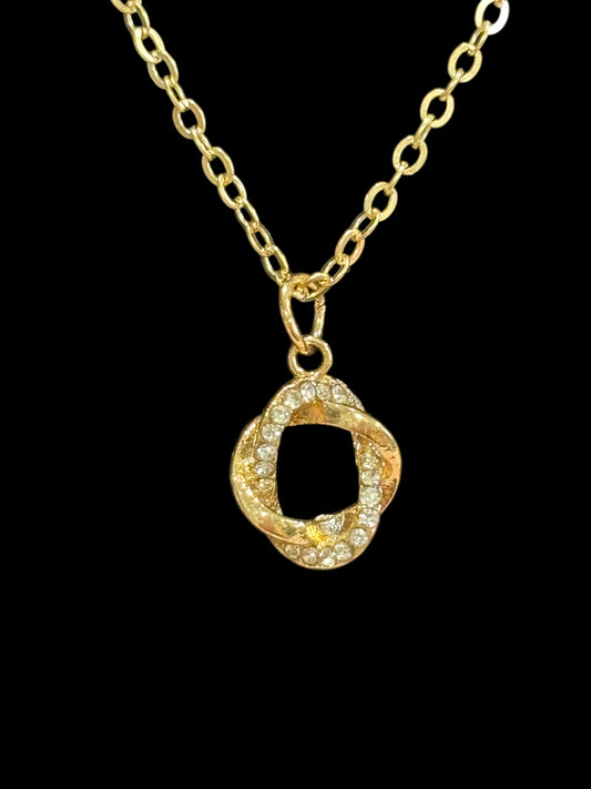 Gold Twisted Circle Pendant Necklace – Rhinestone Accent