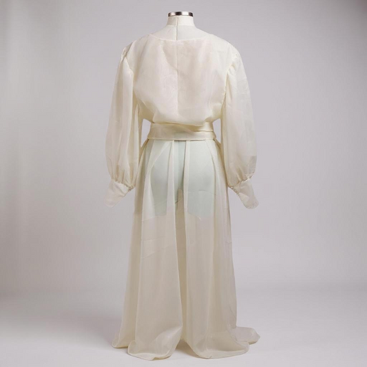 Handmade Ivory Organza Bridal Wrap Gown (Sheer Overlay Robe) XL