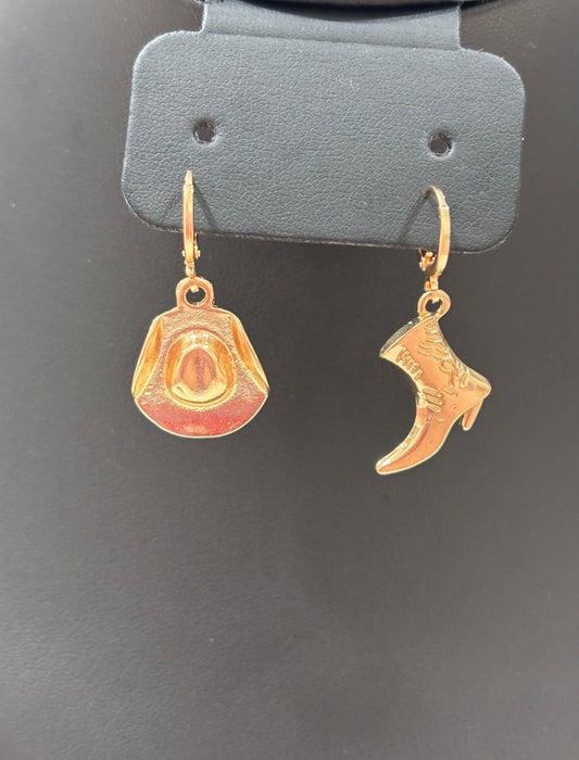 Gold Cowgirl Hat & Boot Earrings – Western Charm Duo