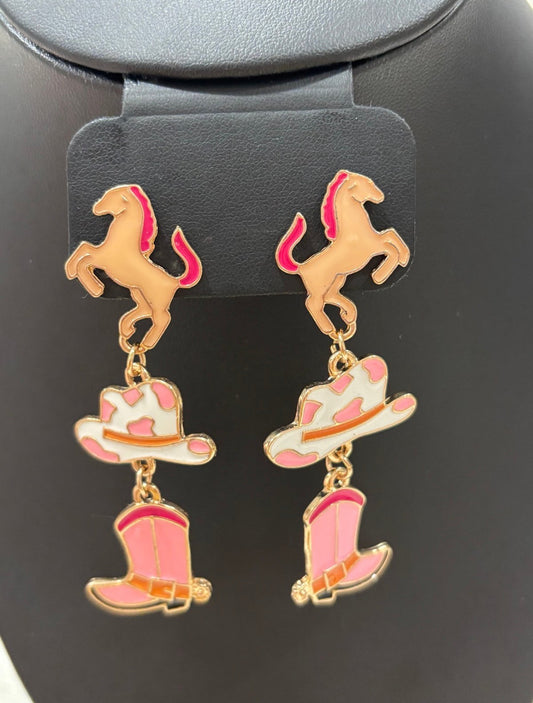 Giddy Up Cowgirl Dangle Earrings – Horse, Hat & Boot Trio