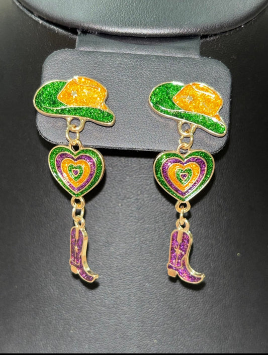 Cowgirl Glitter Earrings – Mardi Gras Style!