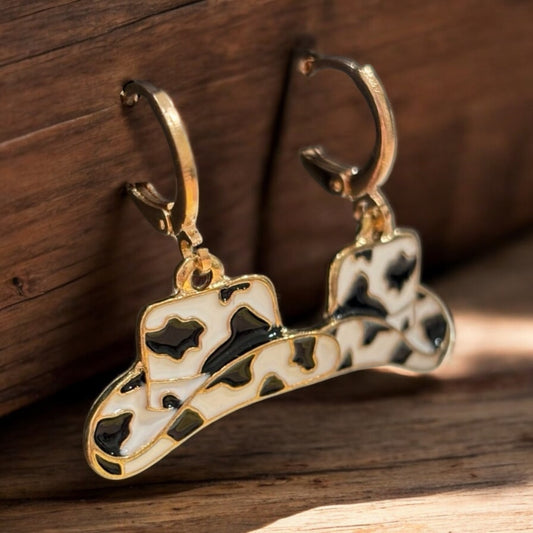 Cow Print Cowboy Hat Hoop Earrings