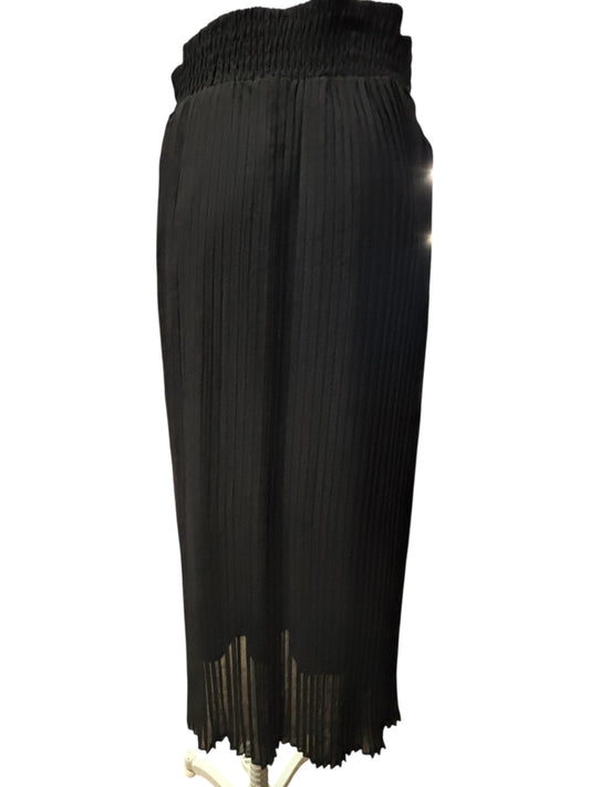 Metro Wear Black Pleated Midi Skirt – Sheer Overlay, Gold Zipper Accents (Size L)